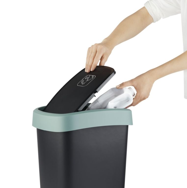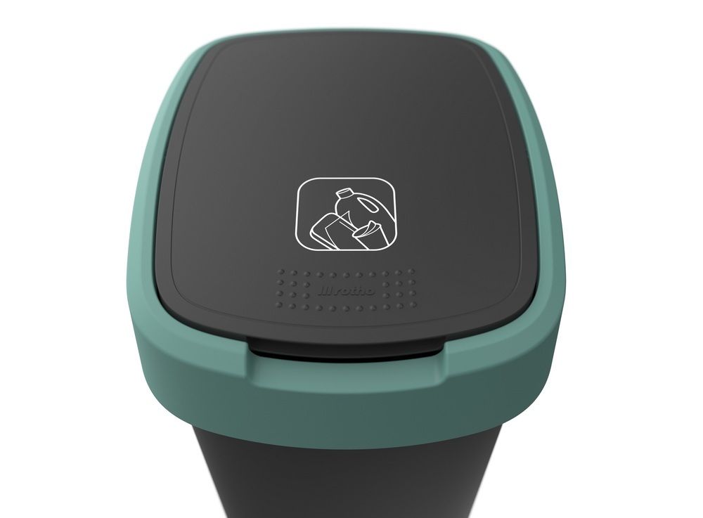 Plastový odpadkový koš s odklápěcím víkem. Dva způsoby otevření koše. Kvalitní materiál a provedení od švýcarské značky Rotho.