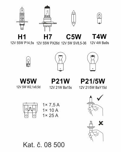 Náhradní žárovky a pojistky uložené v servisním boxu.