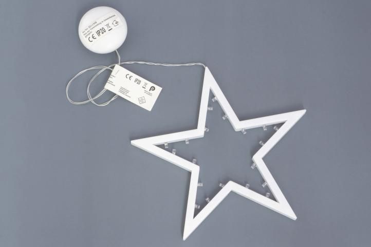 Bílá dekorativní lampa ve tvaru hvězdy je ideální jako vánoční dekorace do vašeho interiéru. Ozdobný stromeček vytvoří všude na okně, na komodě, na vstupních dveřích nebo na stěně pokoje útulnou vánoční atmosféru. Vhodné pouze pro vnitřní použití - testovaná třída krytí IP20 zaručuje bezpečnost. Díky přihrádce na baterie jste nezávislí na zásuvkách, takže vánoční dekoraci můžete umístit kamkoli v místnosti.