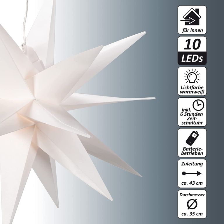 Vánoční dekorace hvězda s časovačem 35 cm, 10 LED, bílá