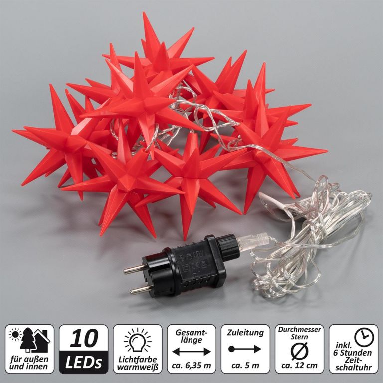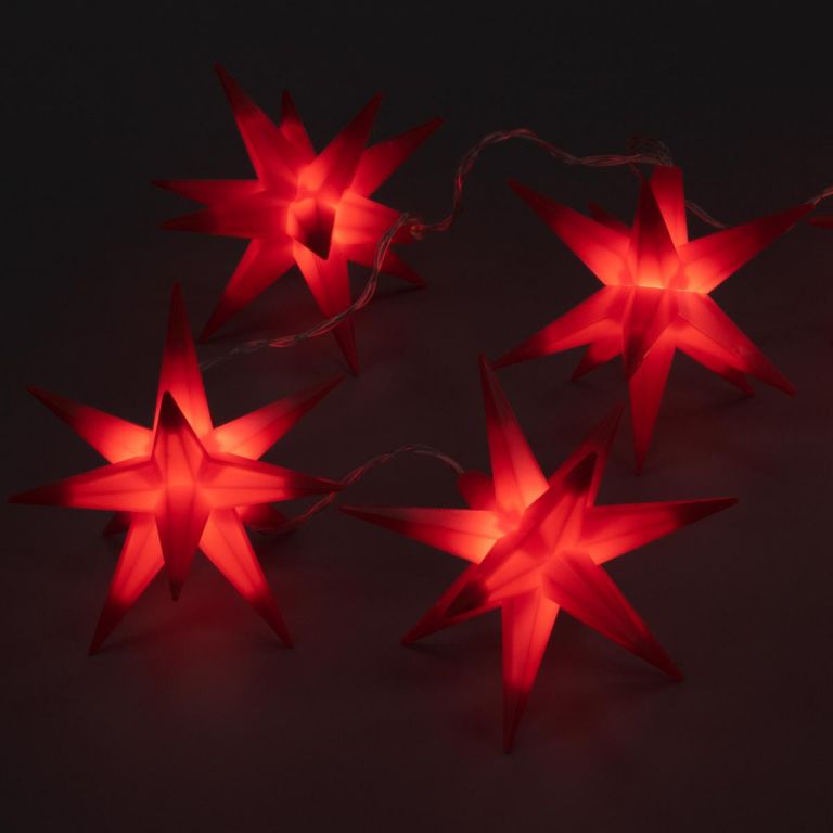 Vánoční LED hvězdy, červené, 10 LED, průhledný kabel