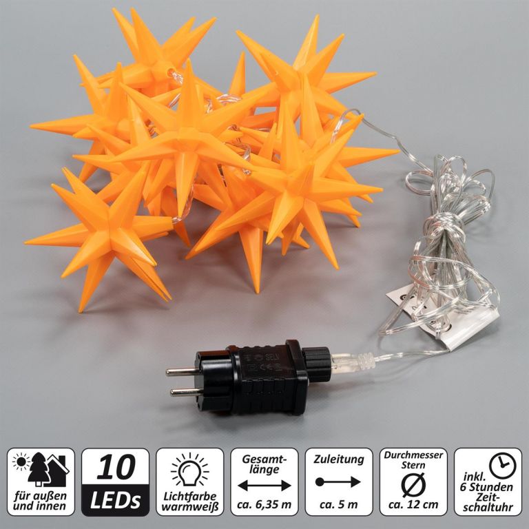 Vánoční LED hvězdy, oranžové, 10 LED, průhledný kabel