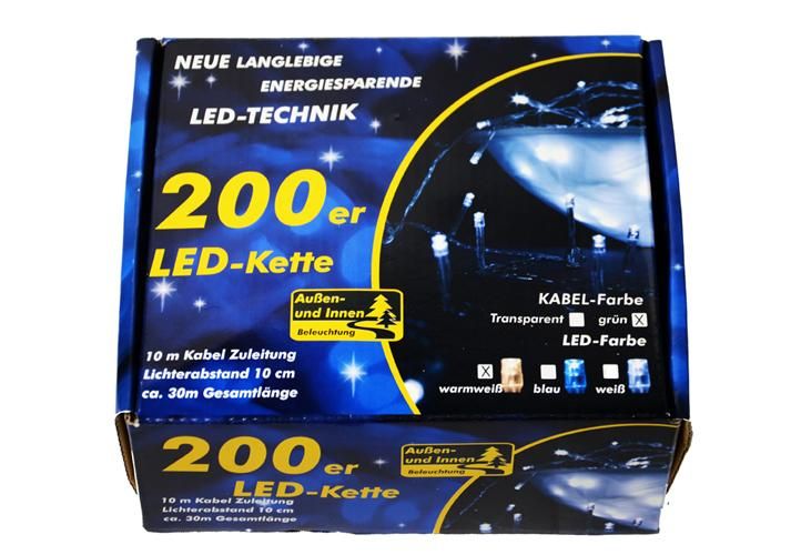 Vánoční dekorativní osvětlení je vhodné pro vnitřní i venkovní použití. Ozdobte si s ním svůj byt, slavnostně prostřený stůl, nebo vánoční stromeček. Světelná část řetězu měří 18 metru a obsahuje 200 LED diod. LED světla jsou odolná proti nárazům a oproti klasickým žárovkám šetří až 90% energie. Z tohoto vánočního řetězu se bude radovat i Vaše peněženka.