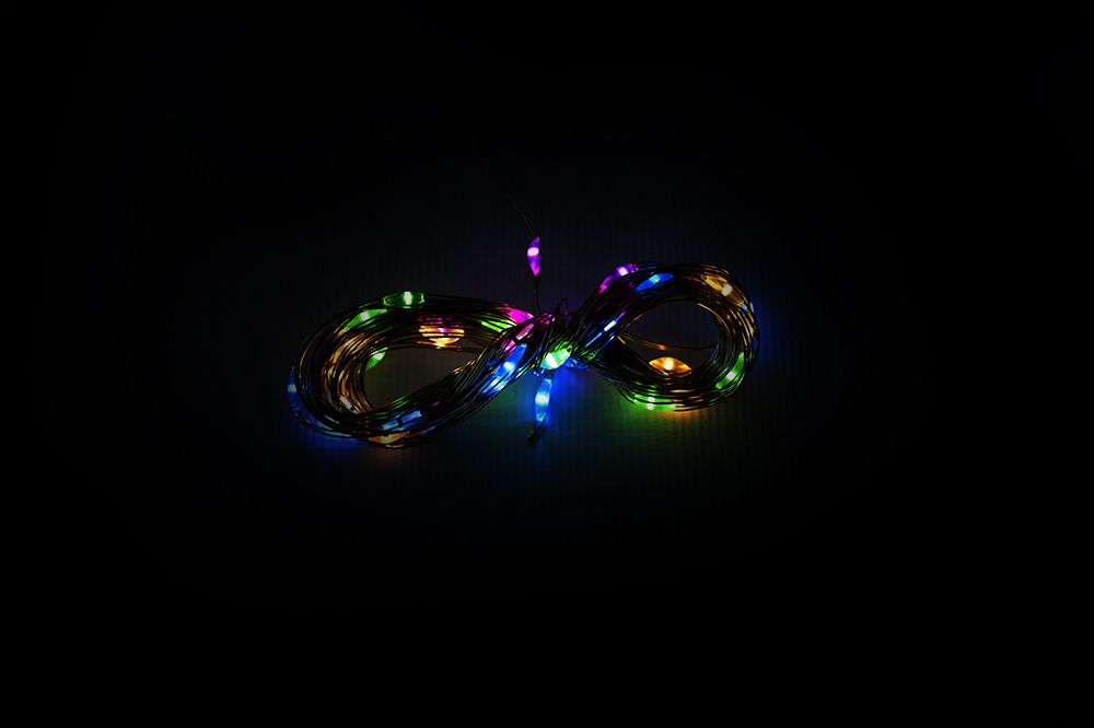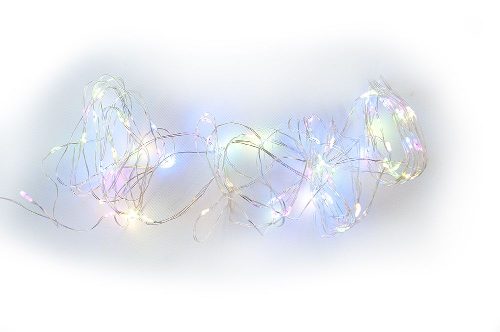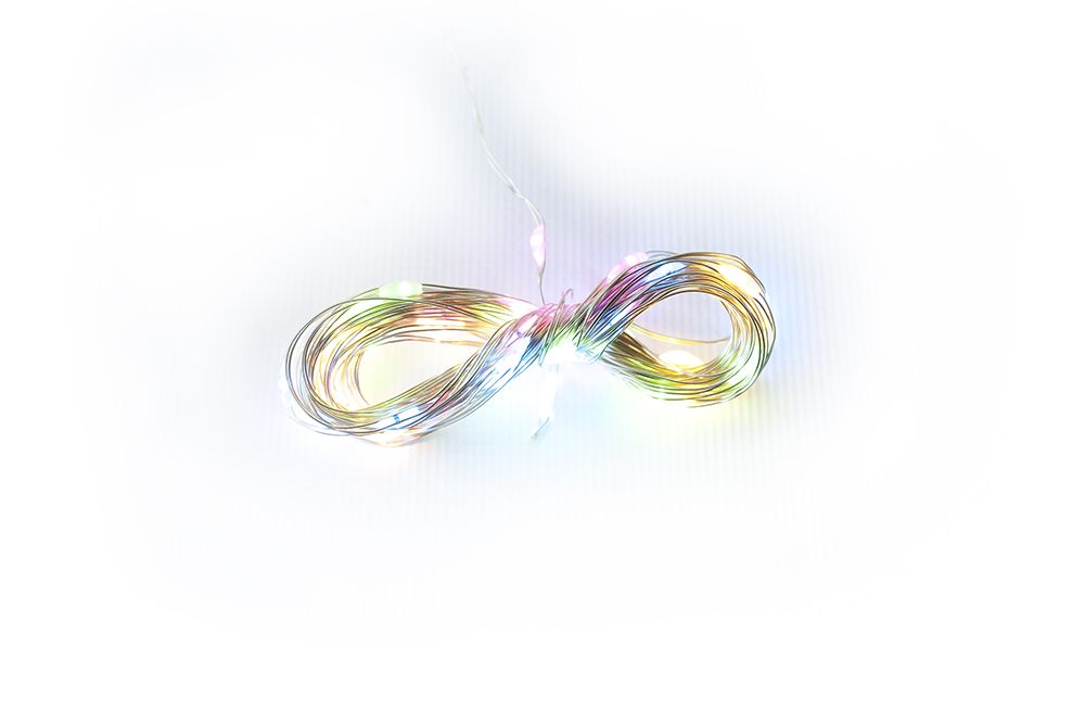 Vánoční LED stříbrný drát, 8 m, 80 LED, s časovačem, barevný