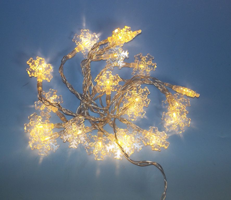 Vánoční světelný řetěz, sněhové vločky, teple bílý, 20 LED