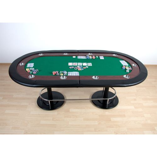 Monaco je vysoce kvalitní pokerový stůl, u kterého zažijete pocit jako u opravdového pokerového turnaje. Deska stolu je vyrobena z 18 mm MDF desky. Stůl má dvě ocelové nohy, čímž je zaručena optimální stabilita. Odolné plátno má klasickou zelenou barvu. Pro příjemný zážitek, i z té nejdelší noci plné pokeru, je na okraj stolu připevněna extra polstrovaná loketní opěrka. Stůl má opěrky na nohy z nerezové oceli a 10 držáků na nápoje. Vnitřní ovál v designu mahagonového dřeva poskytuje dostatek prostoru pro umístění pokerových žetonů.