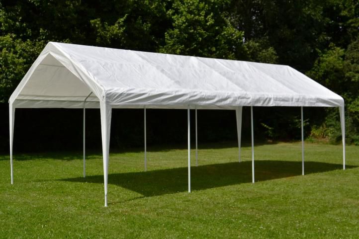 Velký zahradní stan 32m² – ocelové trubky, PE plachta, 4x8m