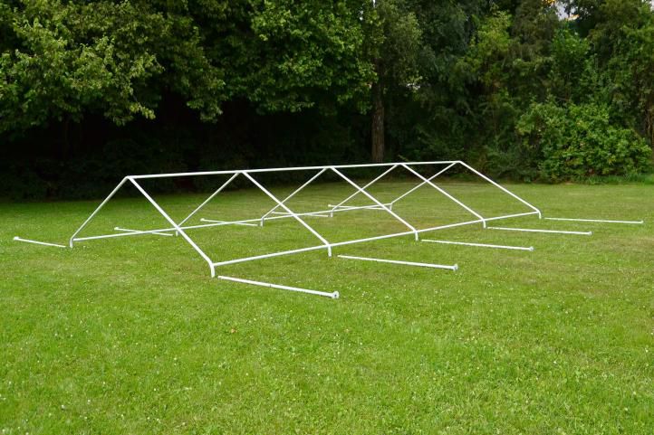 Konstrukce je tvořená pevnými ocelovými trubkami, které stan drží stabilně i za horšího počasí. Střecha i bočnice jsou z odolného PE plachtového materiálu, který vydrží déšť i vítr. Montáž není žádná věda – vše potřebné je v balení, včetně spojek, kolíků a lan. Praktické řešení pro všechny, kteří chtějí mít akci pod střechou, ale zároveň na vzduchu.