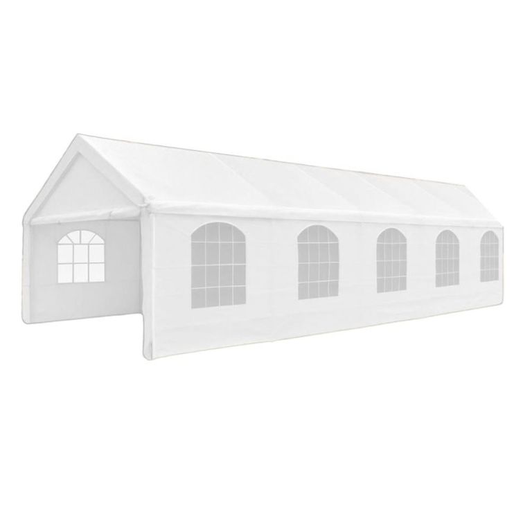 Velký zahradní stan bílý 5×10 m – nepromokavý, uzavíratelný