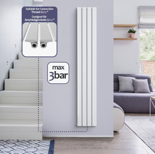 Tento moderní vertikální radiátor nabízí kromě plochého vzhledu i působivý výkon. S tepelným výkonem 530 wattů, bílou ocelovou konstrukcí a moderním designem zahřeje nejen váš domov, ale i váš interiér. Upozornění: Ventily radiátorů nejsou součástí balení.
