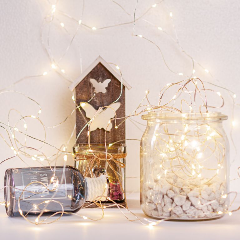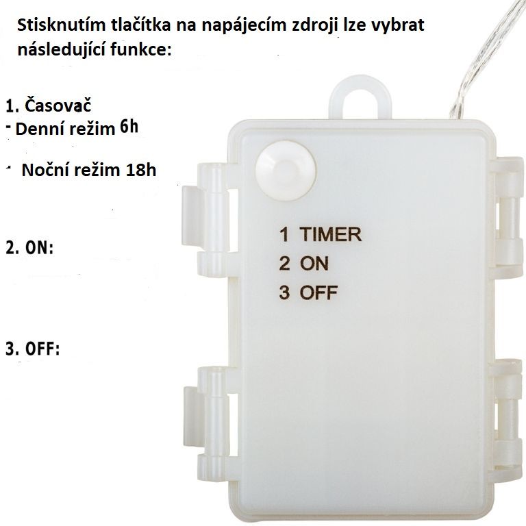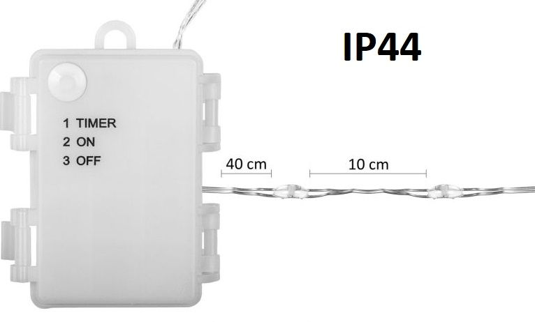 Světelné řetězy s LED diodami jsou ideální dekorací v období Vánoc ale lze je použít k výzdobě čehokoliv. Najde své uplatnění napříkalad na zahradě, můžete s ní vyzdobit zahradní altán či balkón. S tímto jemně působícím osvětlením zpestříte každou party, ale rozjasní také svatební slavnost. LED diody jsou umístěny na tenkém stříbrném drátku, takže osvětlení působí velice decentně. Řetěz obsahuje také časovač. Díky němuž bude osvětlení po prvním zapnutí 6 hodin svítit a 18 hodin bude v nečinnosti. Osvětlení je vhodné pro vnitřní i vnější použití a je napájeno třemi AA bateriemi, které nejsou součástí dodávky.
