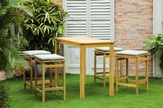 Barový set zahradního nábytku vyrobený z tropického dřeva - akácie.