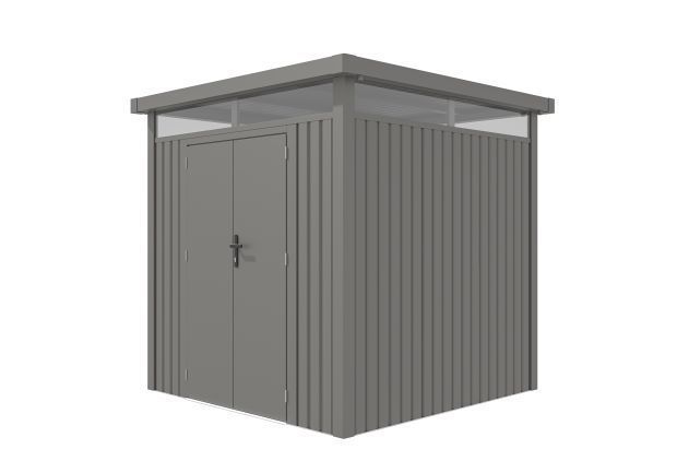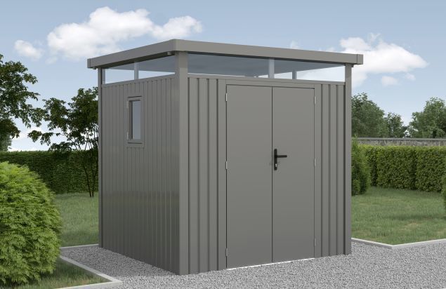 Zahradní domek v moderním designu se hodí do každé zahrady. Domek má dvojité křídlové dveře, které lze uzamknout. Vyroben z kvalitních ocelových plechů tloušťky 0,4 mm a kvalitního rámu zpozinkované oceli tloušťky 0,5 - 1,2 mm. Maximální zatížení střechy sněhem je 60 kg/m2. Jedno otevíratelné okno. Prosvětlené vrchní části panelů. Systém rychlého odvodu deště Bez podlahy.