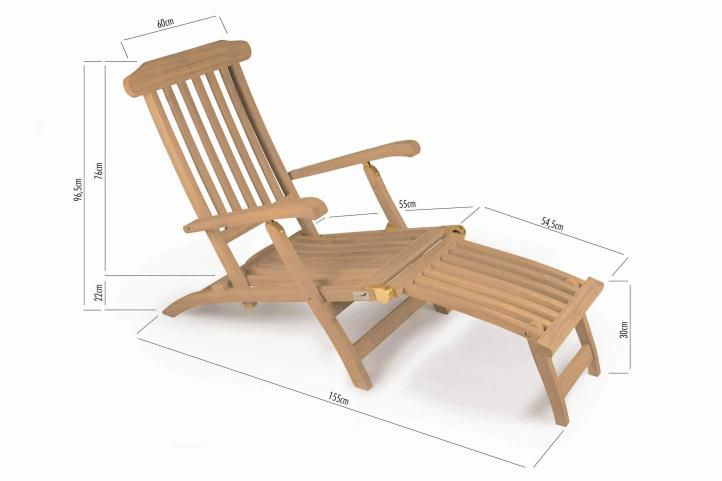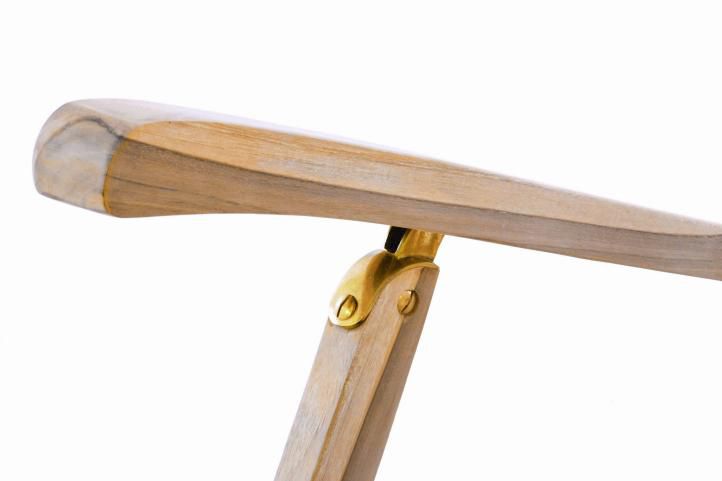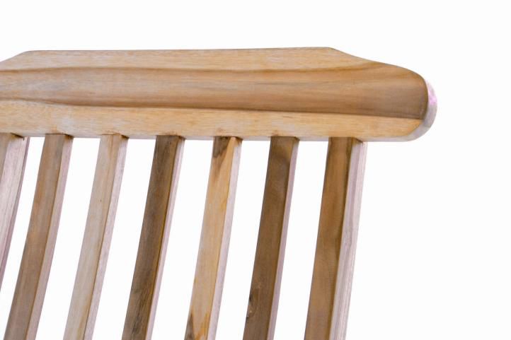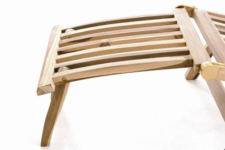 Opěradlo je nastavitelné do 4 poloh, takže sezení nebo ležení si můžete přizpůsobit individuálním požadavkům. Sedák a zadní část jsou vyrobeny z vložených dřevěných vzpěr, což dodává židli velmi atraktivní vzhled. Pokud se nepoužívá, může být sbaleno a uloženo velmi úsporným způsobem. Zvláštností lehátka je odnímatelný nožní díl, čímž je lehátko mnohostranně universálně použitelné.