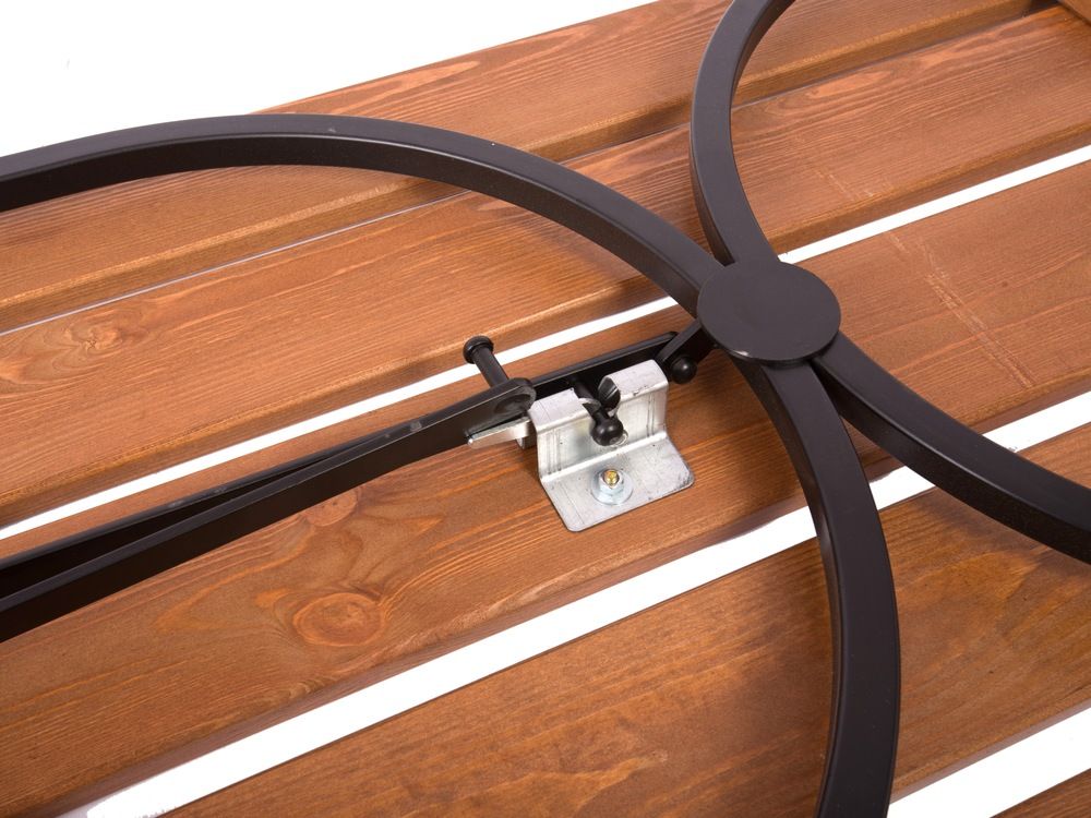 Set je vyrobený z borovicového dřeva s kovovou podnoží. Lakovaný povrch zaručuje ochranu a delší životnosti dřeva. Velkou výhodou tohoto setu je možnost složení podnože, díky tomu ho lze jednoduše uložit či převážet. Certifikát FSC zaručuje, že použité dřevo pochází ze šetrně obhospodařovaných lesů, ve kterých jsou dodržovány přísné ekologické a sociální požadavky.
