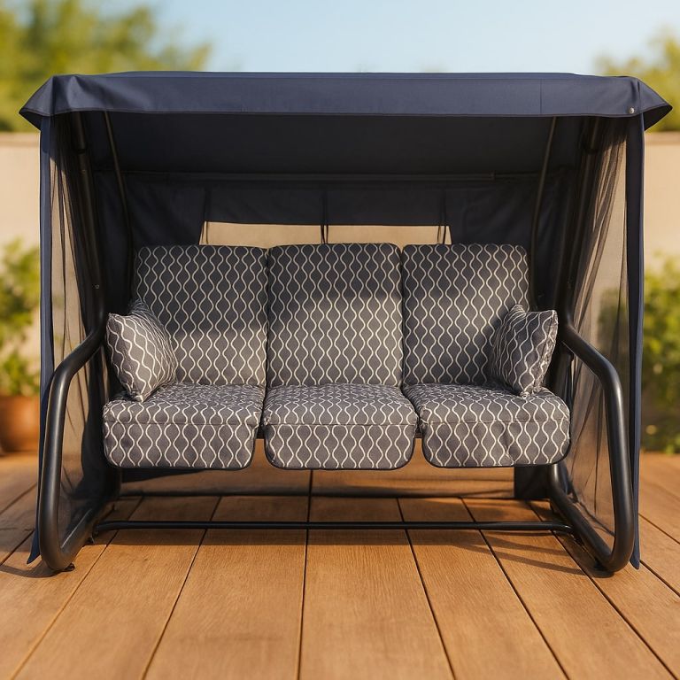 Houpačka kovová 4 místa s lůžkem a moskytiérou: pohodlí, odolnost a styl promění každou zahradu ve wellness zónu pro celou rodinu.