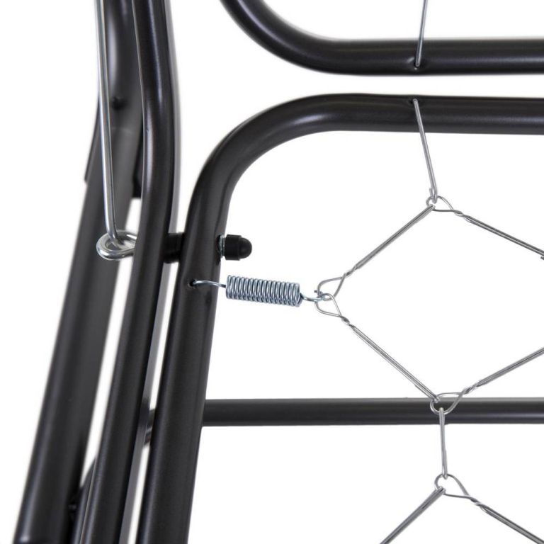 Luxus bez kompromisu: pevná kovová houpačka 209 cm se promění v lůžko, tlumí stres jemným houpáním a zve rodinu k lenošení.