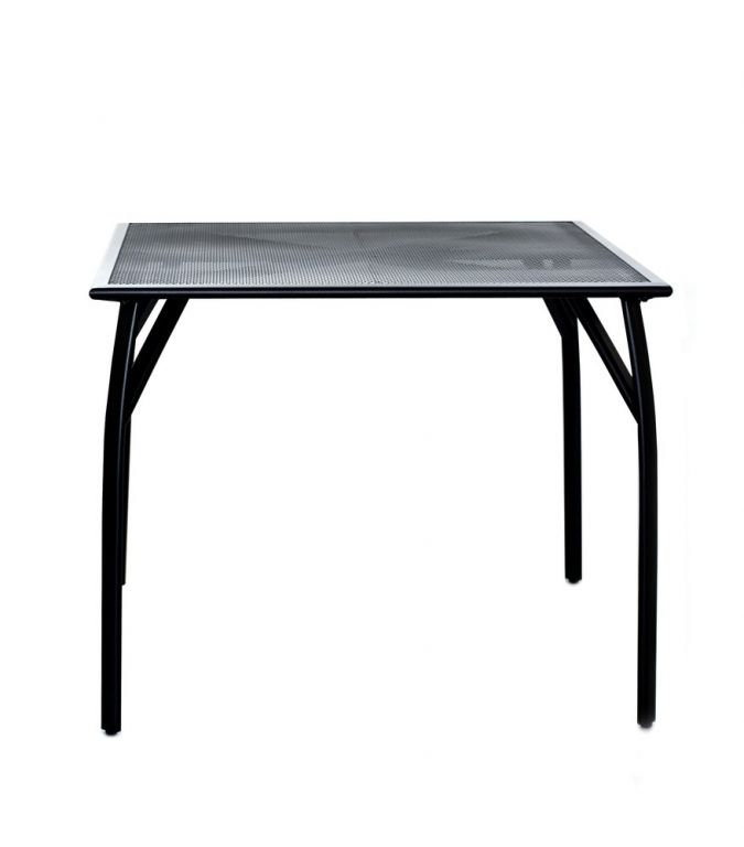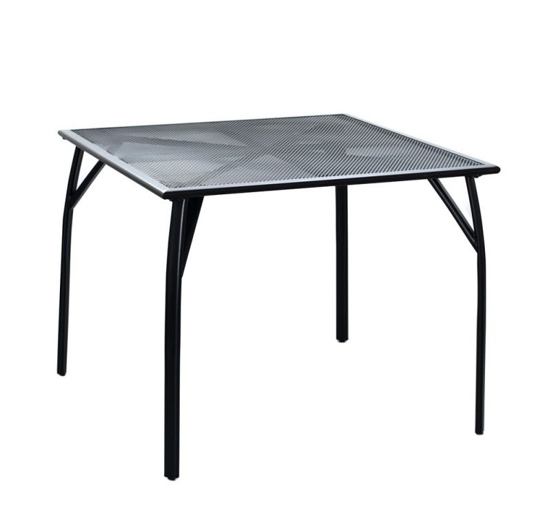 Kovový zahradní stůl s drátěnou vrchní deskou čtvercového tvaru. Výborně se kombinuje se všemi typy kovového zahradního nábytku. Je lehce udržovatelný a omyvatelný.