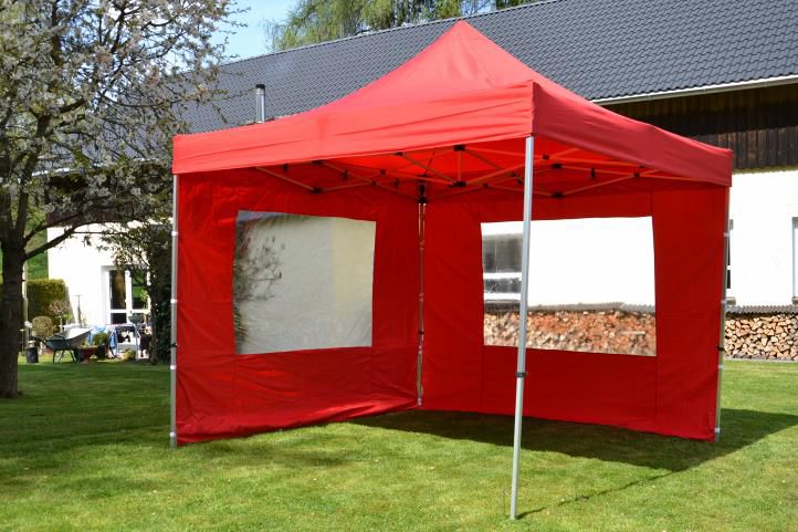 Zahradní párty stan nůžkový PROFI 3x3 m červený + 2 boční stěny