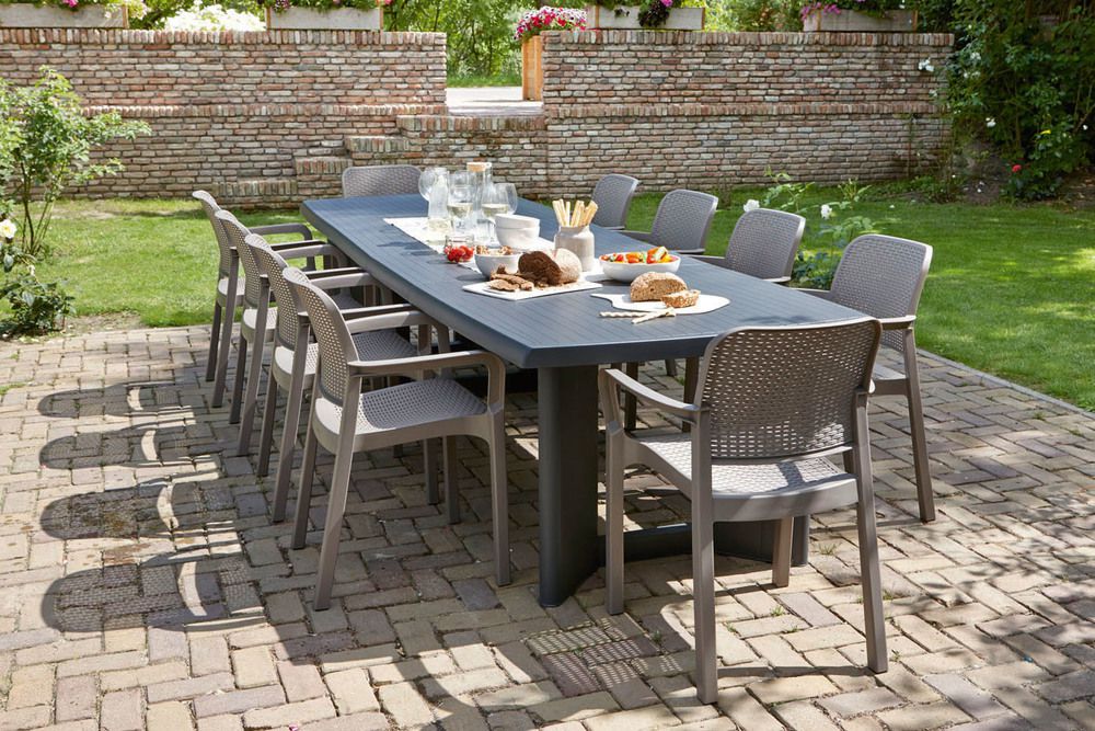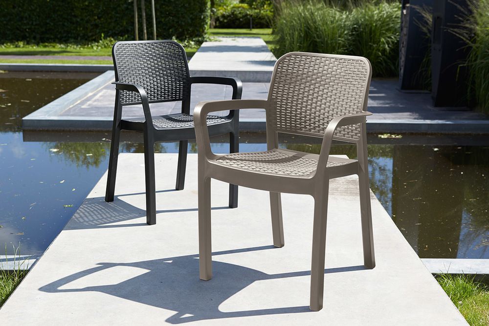 Zahradní plastové křeslo v barvě antracit. Moderní design, snadná údržba,