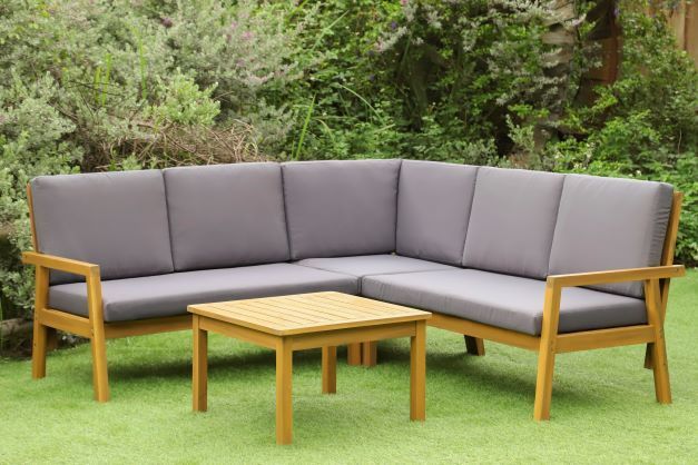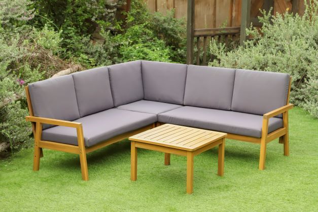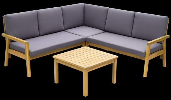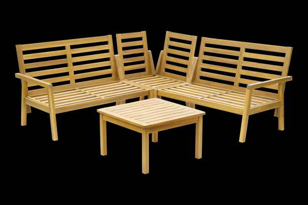 Rohová sedací souprava vyrobená z tropického dřeva - akácie. Akácie jako tvrdé dřevo zaručuje dlouhou životnost a zároveň nenáročnou údržbu. Součástí soupravy jsou i pohodlné podušky a opěrky vysoké 8 cm. Souprava nabízí moderní design a pohodlné posezení na Vaší terase či zahradě.
