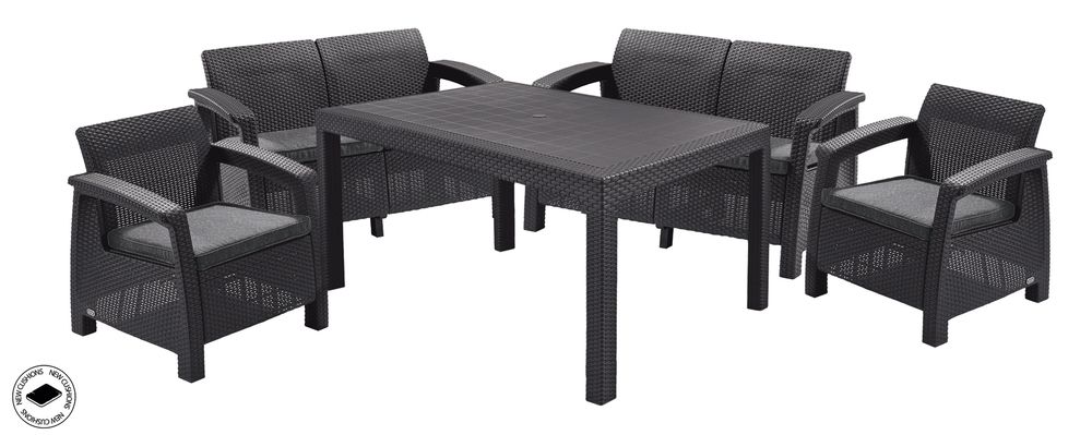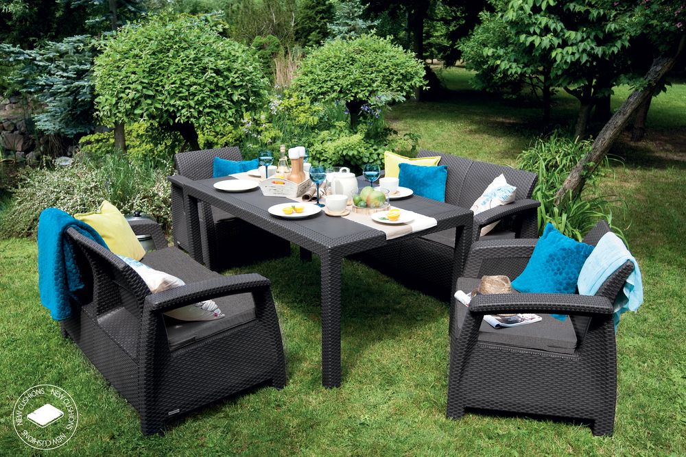Zahradní set CORFU FIESTA, grafit, šedé podušky