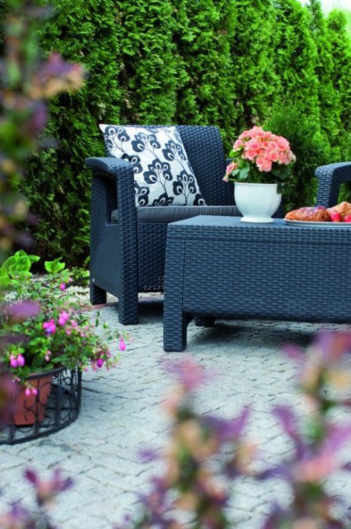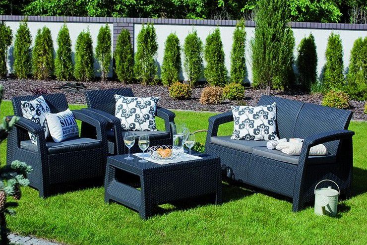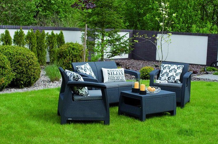 Zahradní set CORFU, polyratan, grafit, šedé podušky