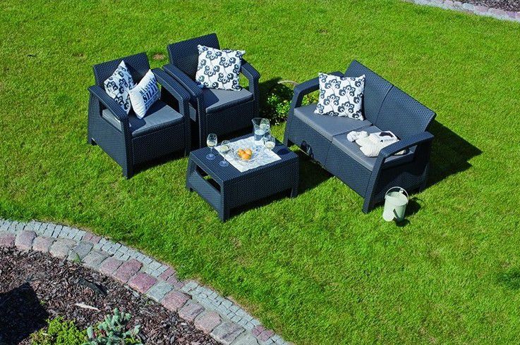 Souprava Corfu je pohodlné a moderní posezení jak ven, tak do interiéru. Souprava je vyrobena z lisovaného plastu v imitaci přírodního ratanu. Set je doplněn o podušky, které zajistí ještě větší pohodlí. Tato souprava patří k nejprodávanějším v této kategorii.