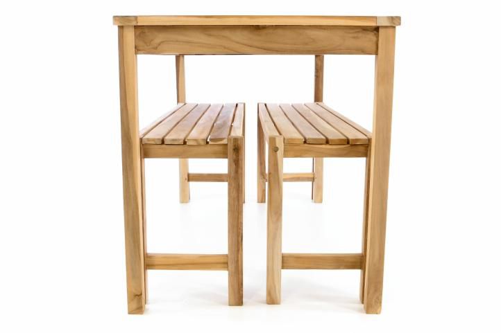 Zahradní set lavic a stolu, neošetřené týkové dřevo, 135 cm