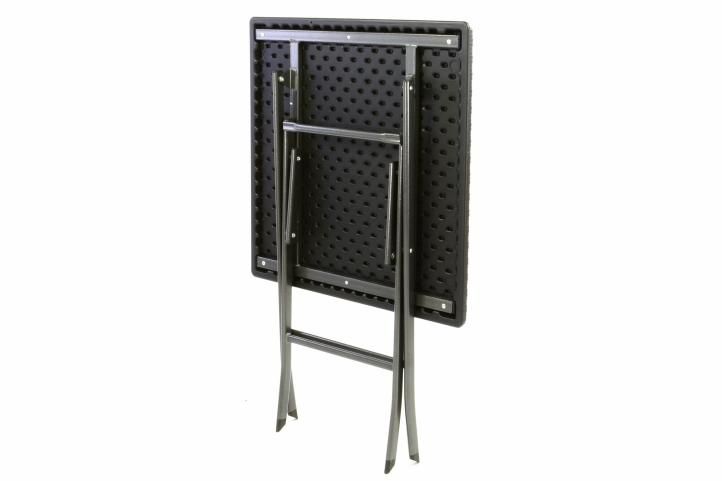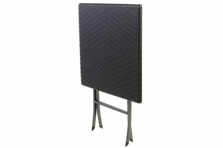 Elegantní zahradní komplet z plastu, zpracovaný v elegantním černém ratanovém designu. Jednoduše rozložitelný a všestranně použitelný na balkoně, terase nebo na zahradě. Příjemně strávenému času na čerstvém vzduchu nestojí nic víc v cestě. Samozřejmě můžete komplet použít i ve svém domově. Nohy jsou opatřeny gumovými záslepkami. Stabilní a nenáročné na údržbu. V případě, že nábytek zrovna nepoužíváte, obratem ruky jej sklopíte a úsporně uskladníte.