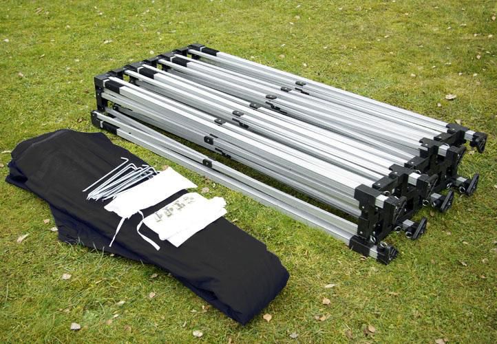 Zahradní párty stan, který je díky automatickému nůžkovému systému snadno a rychle sestavitelný. Nůžková konstrukce ve složeném stavu má tvar kvádru, proto je dobře skladná. Díky lehkosti hliníkové slitiny se s konstrukcí snadno manipuluje. Stan snadno složíte a rozložíte téměř jediným pohybem! Složenou konstrukci spolu se stanovými plachtami snadno převezete v osobním autě.