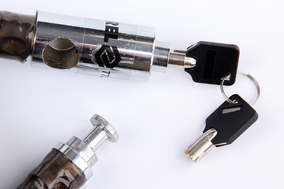 Univerzální lankový zámek o délce 150 cm, průměru 25 mm a zamykáním na klíček. Vsází na jednoduchost a spolehlivost. Ochrání vašeho dvoukolového miláčka, ať už parkujete kdekoliv a kdykoliv.