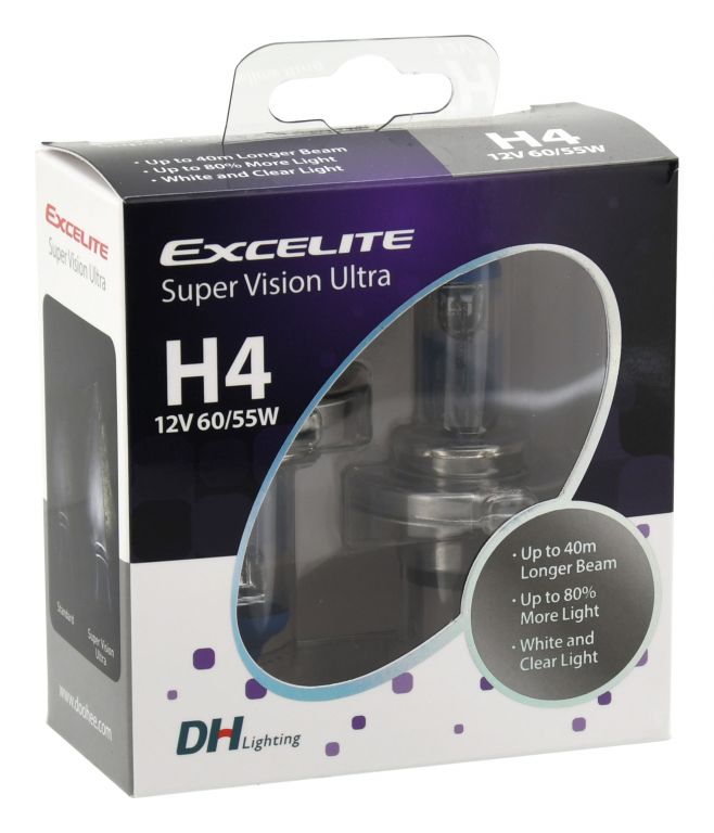 Halogenová autožárovka vyniká vysoce kvalitním zpracováním a jedinečným světelným výkonem s vysokou barevnou teplotou. Díky technologii Super Vision Ultra žárovka vyzařuje až o 80 % více světla na cestě, kde paprsky jsou až o 40 m delší než u obyčejných žárovek. Sklo se speciálním modrým povlakem dodává jasné bílé světlo. Tato autožárovka je vytvořena na základě nejmodernějších technologií s těmi nejpřísnými požadavky na kvalitu. Žárovka je vhodná pro všechny druhy světlometů, díky sklu opatřenému UV filtrem.