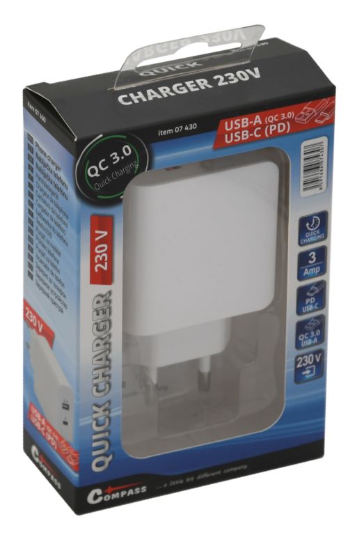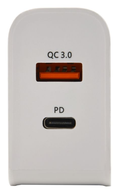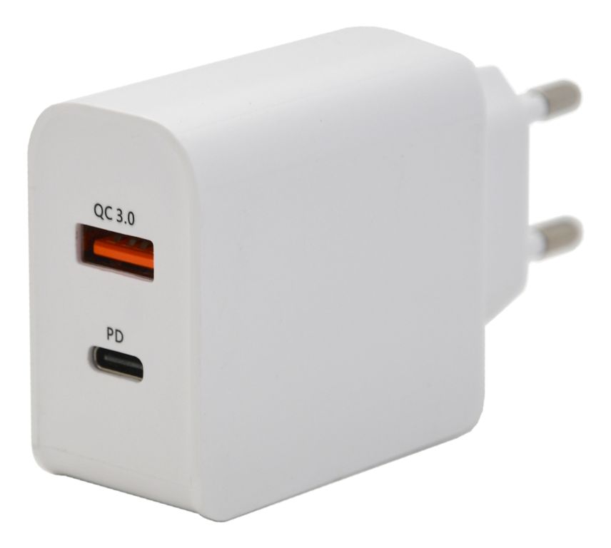 Kompaktní QC 3.0 / PD zástrčka pro 230V zásuvky umožňuje nabíjení běžných USB-A a USB-C zařízení. Technologie QC 3.0 (Quick Charge) a PD (Power Delivery) nabízí výkonné nabíjení pro Vaše USB zařízení. Zařízení je schopné napájet či nabíjet mobilní telefony, MP3 přehrávače a další zařízení schopné dobíjení či napájení pomocí USB kabelu.