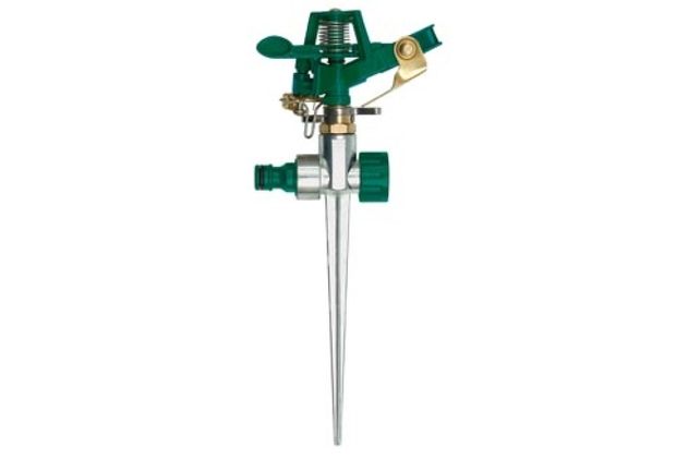 Zavlažovač impulzní se zinkovým bodcem pro stabilní instalaci vyroben z oceli s prvky kvalitního ABS plastu. Výseč postřiku od 45°do 360° s maximálním dostřikem v průměru 24m. 1/2"rychlospojka pro snadné a rychlé připojení a odpojení zahradní hadice.